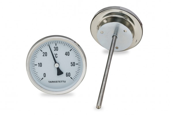Tarkka kanavalämpömittari (tarkkuusluokka 1) isolla helppolukuisella taululla jonka halkaisija on 100 mm. Mittarin 200 mm pitkä anturi on ruostumatonta terästä ja sen halkaisija on 8 mm. Mittari on helppo asentaa mukana toimitetattavan laipan avulla.