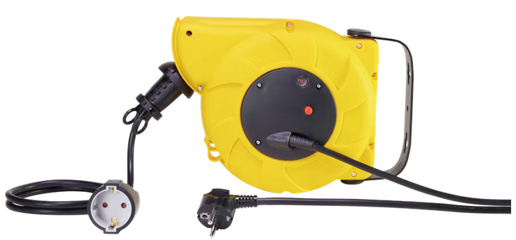 Itsekelautuva johtokela, IP20, kaapelin pituus 9 m. Seinään kiinnitettävä. H=5VV-F 3G1,5mm². Schuko pää. Kuormitus kaapeli kelalla max. 1400 W, kaapeli kelattuna ulos max. 2000 W.