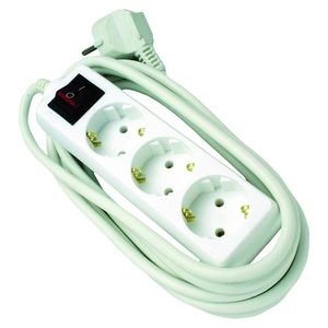 Jatkojohto, maadoitettu, 3-osainen, 3 m, valokytkin, H05VV-F 3G 1,5 mm², 16 A/250 V, max. 3500 W